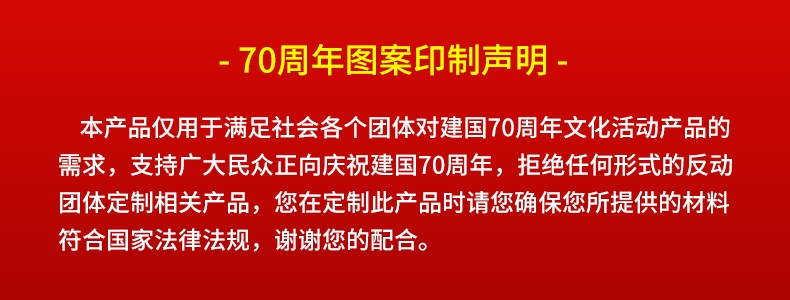 ? ? 3.以庆祝活动标识为元素制作的用品,要与庆祝中华人民共和国成立70周年主题密切相关,不得乱用、滥用。